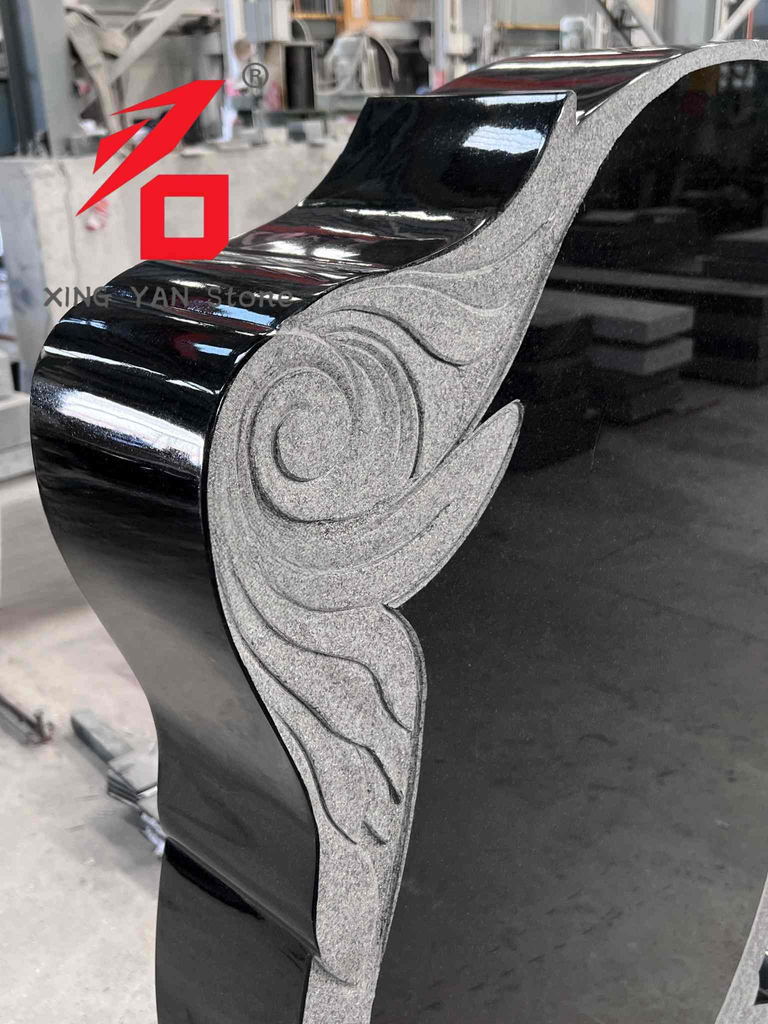 Material: Seçilmiş yüksək keyfiyyətli qara və boz qranit. Qara qranit yüksək parıltı və ləyaqətli bir toxuma, boz qranit incə bir toxuma və əla oyma xüsusiyyətlərinə malikdir. İkiqat təbəqə parçalanması vizual dərinliyi və bədii cazibəni artırır.