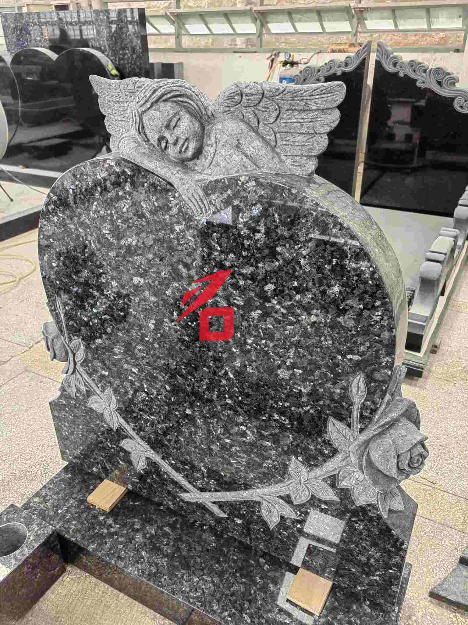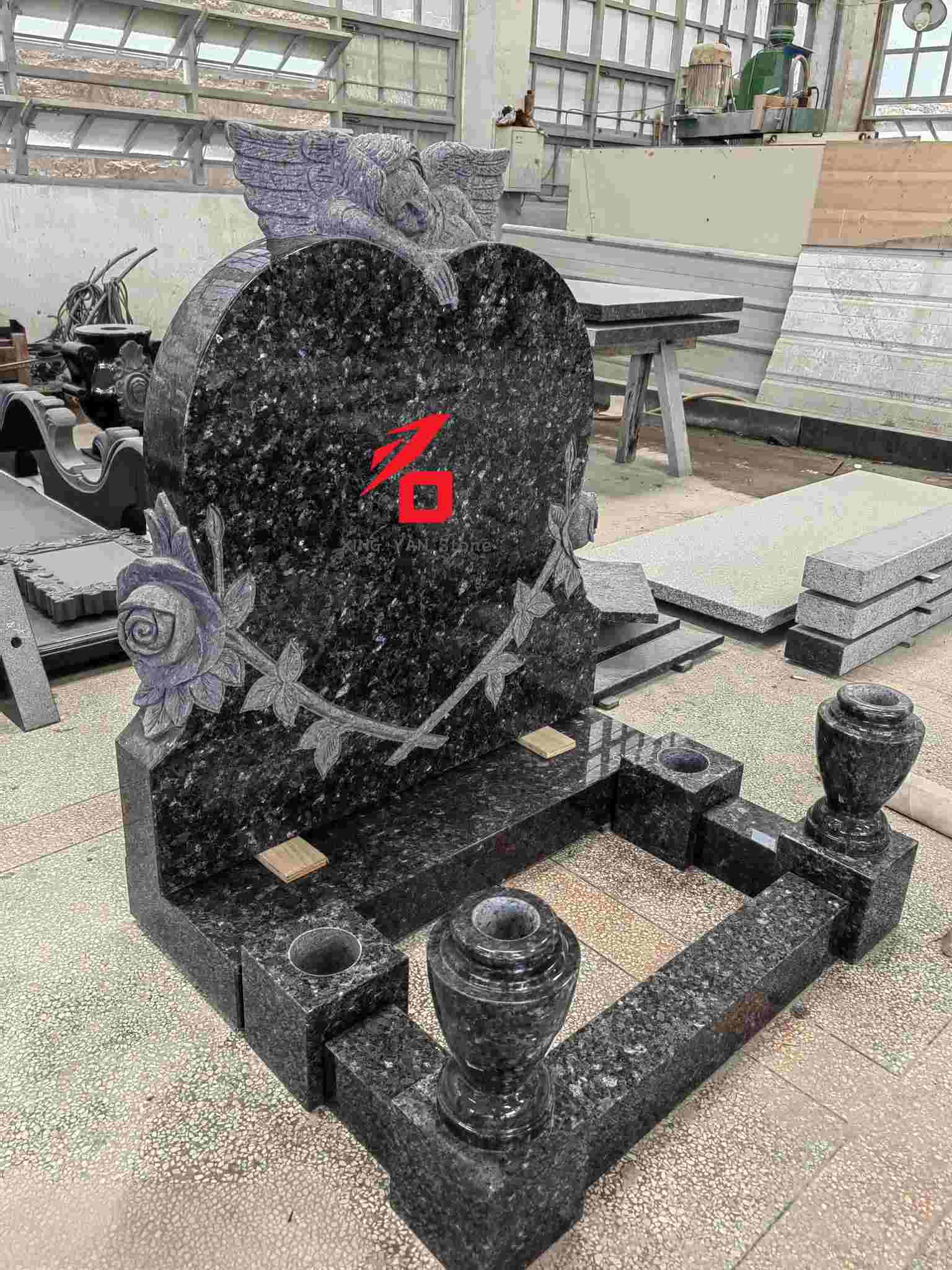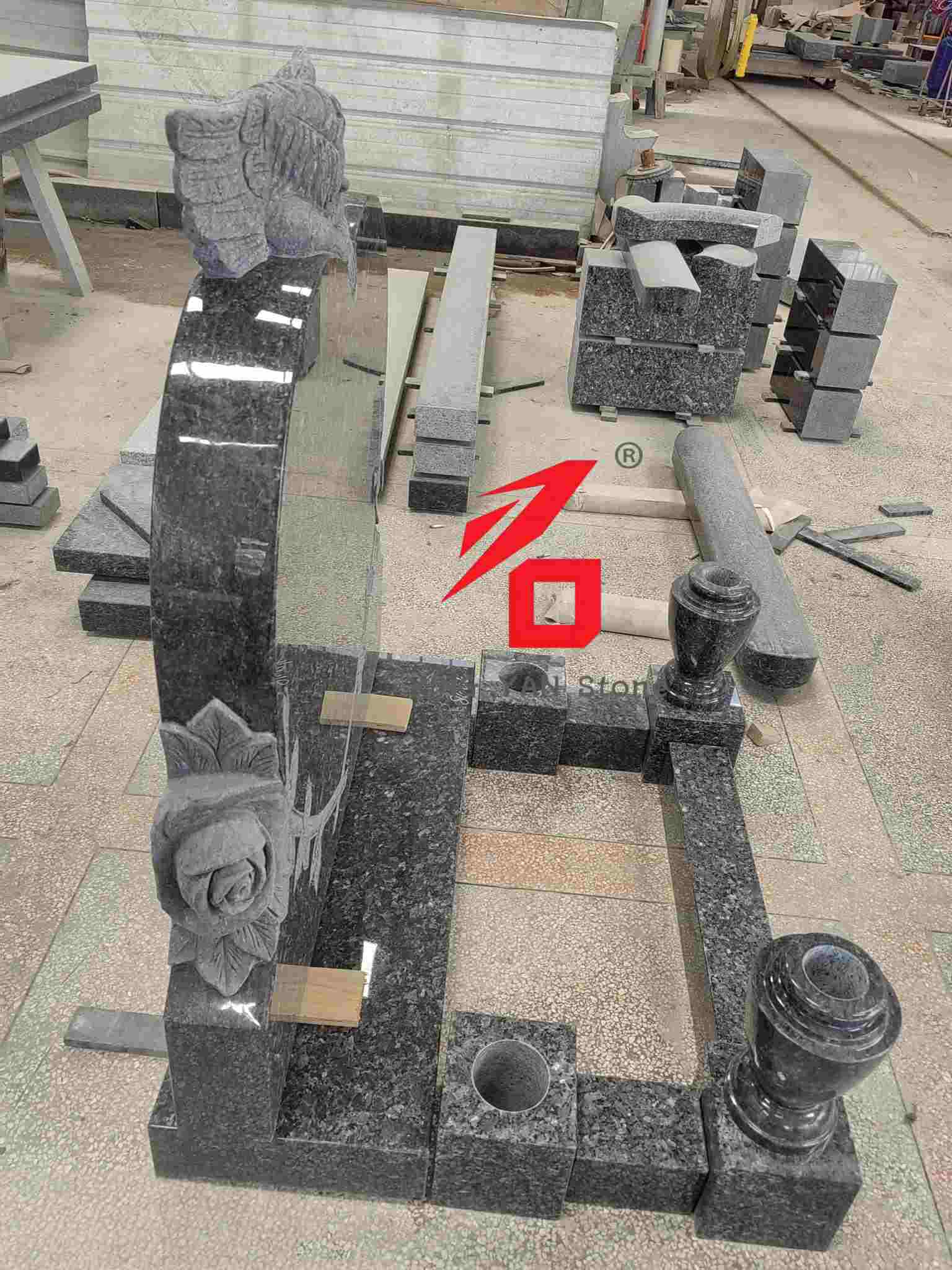 Material: Yüksək sıxlıqlı mavi inci qranit, sərt və hava davamlı, təntənəli və ləyaqətli hiss edən qaranlıq bir baza ilə;