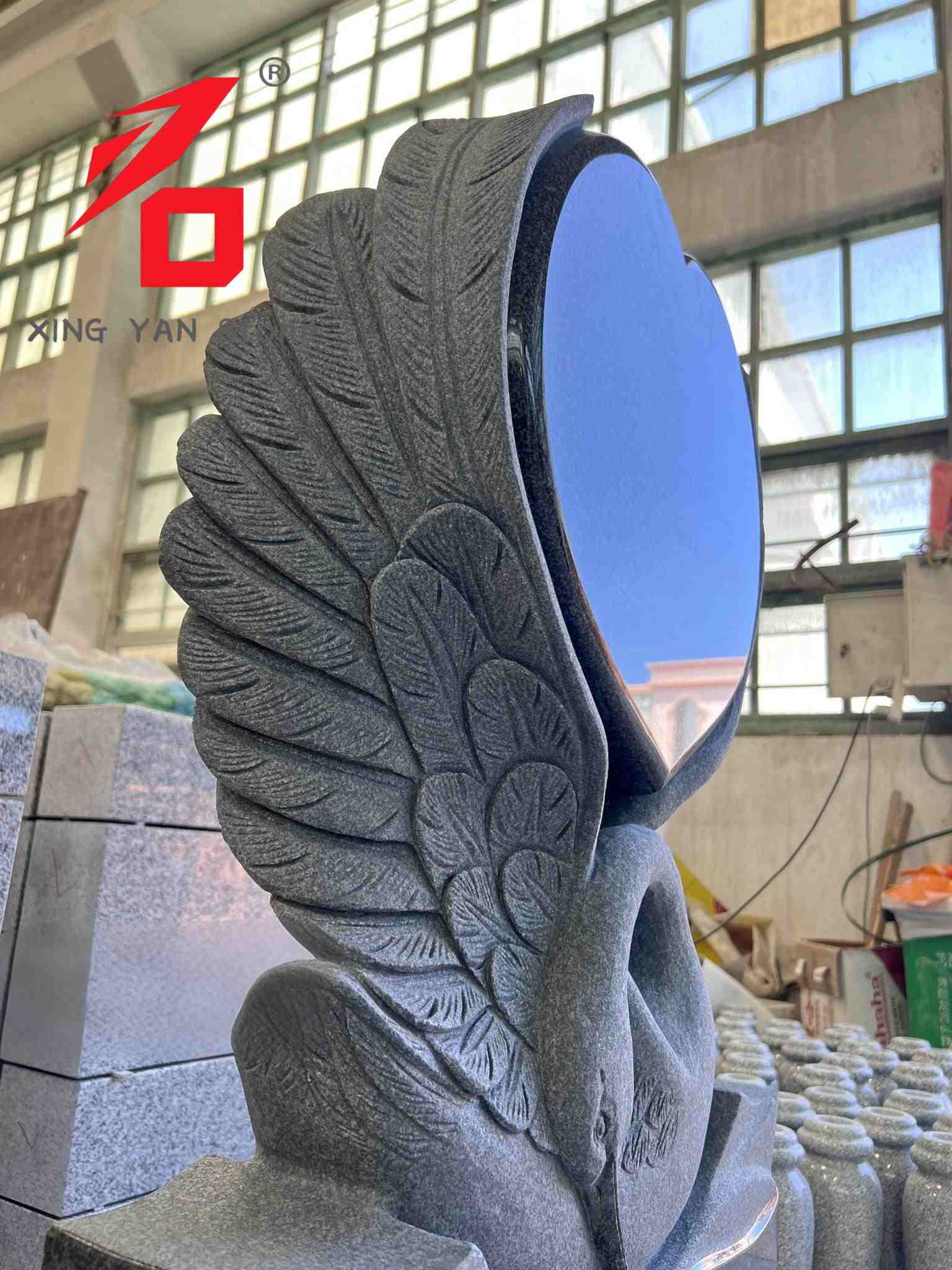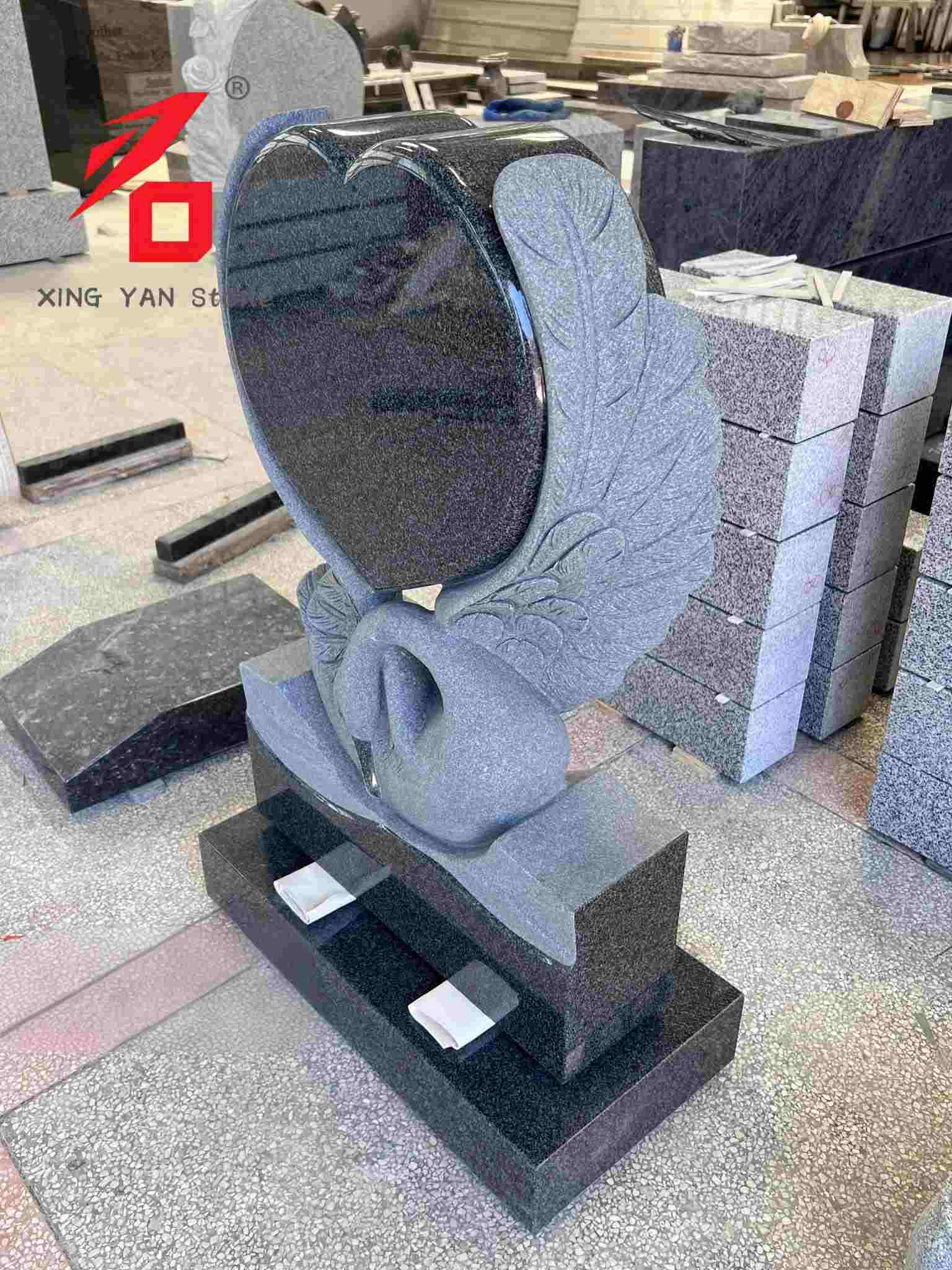 Dizayn: Əsas bədən, cilalanmış qara ürək, həyatın arxasında oyma oyulmuş qanadları olan bir cilalanmış qara ürəkdir. Swan forması və ürəyi mərhum üçün əbədi sevgini və zikrini simvollaşdırır. Ümumi dizayn yüksək bədii, onu ənənəvi məzar daşlarının monoton üslubundan fərqləndirir.